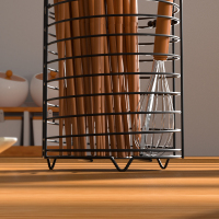 产品材质是优质碳钢,具有硬度高,大容量,防滑等特点 多种收纳筷子,勺子,纸巾等 三角架稳固承载厨具 表面处理: 抛光