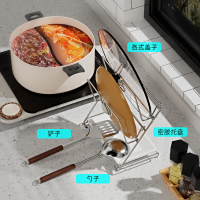产品材质是304不锈钢,具有防水防潮、防生锈、抗腐蚀性、硬度高特点 多功能收纳锅盖,铲子等 底部密胺沥水盘接住水,不湿台面 表面处理: 亮光