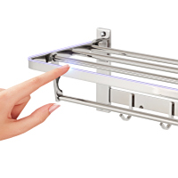 产品材质是304不锈钢,具有防水防潮、防生锈、抗腐蚀性、硬度高特点 超强承重,不怕掉落 双层收纳毛巾,还有挂钩收纳 表面处理: 亮光