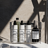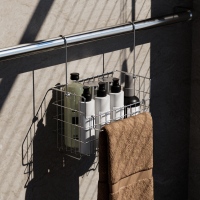 产品材质是304不锈钢,具有防水防潮、防生锈、抗腐蚀性、硬度高特点 免打孔悬挂于杆子上使用,也可台面使用 大容量收纳洗护品,毛巾等 表面处理: